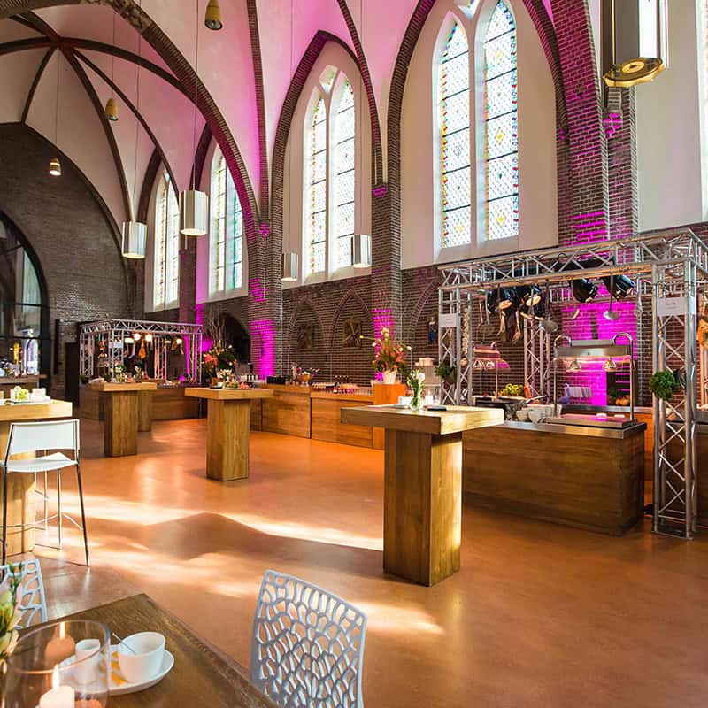 De Johannes de Doperkerk ligt op slechts één minuut loopafstand van onze andere locaties: De Heeren van Montfoort, De Commanderij van Sint-Jan en Tuin De Hoge Waard. Daardoor kun je heel makkelijk combineren. Denk aan een ontvangst of programma-onderdeel in de kerk en daarna door voor een borrel, diner of feestavond op één van onze andere sfeervolle locaties.