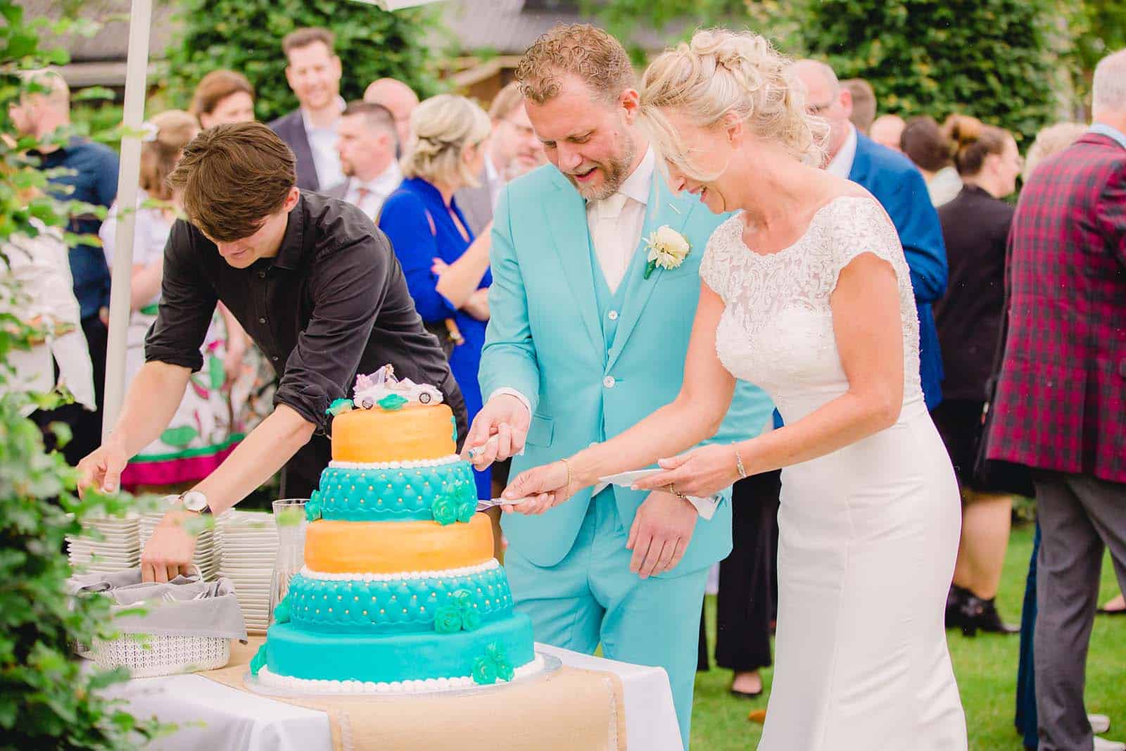 Receptie in een Weelderige Tuin: Laat jullie gasten genieten van een receptie in de frisse buitenlucht, omgeven door groen en schaduwrijke bomen. De tuin biedt een intieme en ontspannen sfeer voor het aansnijden van de bruidstaart en het proosten op het geluk.